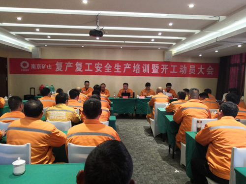 陽春布德澤,萬物生光輝。在春意盎然的三月,臺兒莊分公司的工程進度迎來嶄新的一頁。為了深入貫徹落實當?shù)貞?yīng)急管理部門文件精神,以及分公司制定的《2019年度安全教育培訓計劃》有關(guān)規(guī)定和要求,全面貫徹“安全第一,預防為主,綜合治理”的方針,認真開展非煤礦山安全生產(chǎn)教育培訓工作,切實做好3月13日開工生產(chǎn)投料工作,臺兒莊分公司于2019年3月11日-12日組織召開了全體員工復產(chǎn)復工安全生產(chǎn)培訓暨開工動員大會。