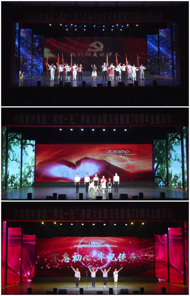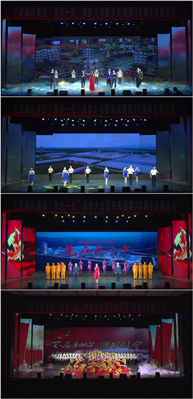 在慶祝中華人民共和國成立70周年主題活動上,來自集團11家成員企業(yè)的干部員工分為傳承、責(zé)任、奉獻、奮斗四個篇章,以演說、合唱、舞蹈、快板、情景劇、舞臺劇等多種形式,或激情澎湃、或感人至深、或娓娓道來,呈現(xiàn)了一場振奮人心、鼓舞士氣的精神盛宴,一次次贏得現(xiàn)場雷鳴般的掌聲。北新建材的《初心向黨耀北新 砥礪奮進譜新篇》、凱盛科技的《偉大跨越中的凱盛之路》,回顧了中國建材人不忘初心、砥礪前行,大力發(fā)展新型建材和玻璃工業(yè)的光輝歷程;中聯(lián)水泥的《最美的藍(lán)天 最美的你》、天山水泥的《敢問誰人無芳華 我自不悔駐村行》、南方水泥的《夢想啟航南方》,講述了中國建材人積極貫徹落實黨中央決策部署,勇做美麗中國的推動者、脫貧攻堅的踐行者和供給側(cè)結(jié)構(gòu)性改革的引領(lǐng)者的動人故事;中國建材總院的《我們都是追夢人》、地勘江蘇總隊的《誓言無聲》、北新集團的《我的房屋夢》,詮釋了中國建材人堅守奉獻、實干擔(dān)當(dāng)?shù)膱远ㄐ拍詈蜔o悔追求;中國巨石的《逐夢奮進再出發(fā)》、泰山玻纖的《泰山玻纖 玻纖泰山》、中材國際南京的《黨在我心中——與祖國同行 與時代共進》、凱盛科技的《不忘初心》展現(xiàn)了中國建材人不忘初心、牢記使命、永遠(yuǎn)奮斗的最美姿態(tài)。活動在全場齊聲高唱《歌唱祖國》的歌聲中圓滿落幕。